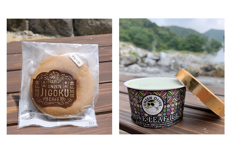 雲仙温泉の商店街を見てまわりながら、雲仙地獄にあるカフェスタンドでおやつタイム。