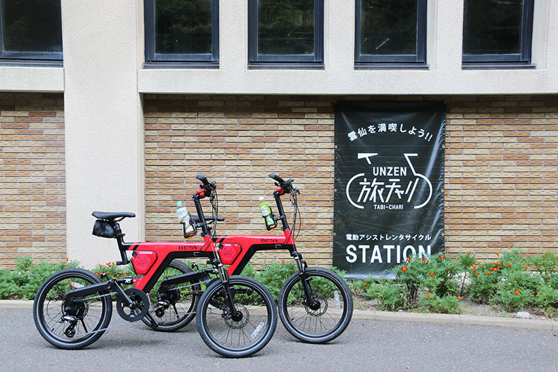 普賢岳の雄大な自然やビードロ美術館、湯煎ぺい体験など、観て楽しい、遊んで楽しい雲仙(天草)国立公園をサイクリングできる旅チャリ!スタイリッシュな電動アシスト自転車なので、急な山道も快適に散策することができます!