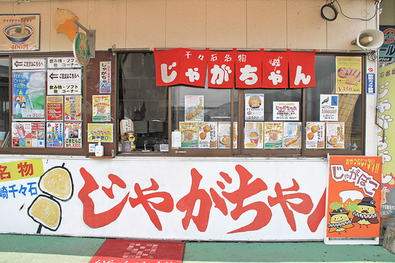 眺めのいい展望台や、こだわりの郷土料理など、お食事に休憩にちょっとひと休みしたくなる千々石観光センター。国道57号線を小浜方面に進むと、可愛いにわとりの看板が見えてきます。ここでしか食べられないと大人気、みんなのソウルフードじゃがちゃんは、作り始めて40年以上変わらない美味しさで、お祭りやイベントでもお馴染みです。