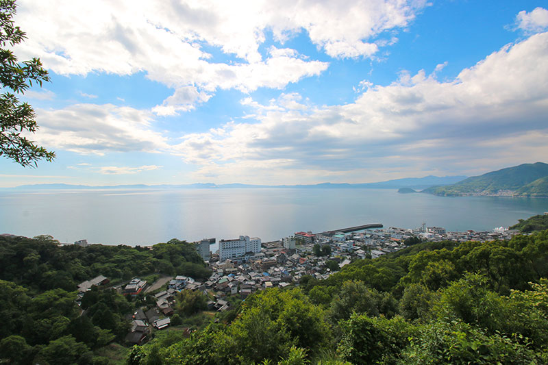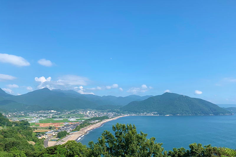 10年ほど前にできた展望台からは、目の前に小浜温泉街が一望できる景色が広がり、晴天の日には遠くまで見渡すことができます。小浜の夕日を眺めに多くの方が訪れているようです。