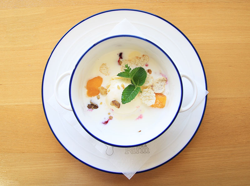 フレッシュなヨーグルトとアイスクリームのコラボ。ドライフルーツ、ナッツ、ジャムをトッピング。ここでしか味わえないスイーツです。