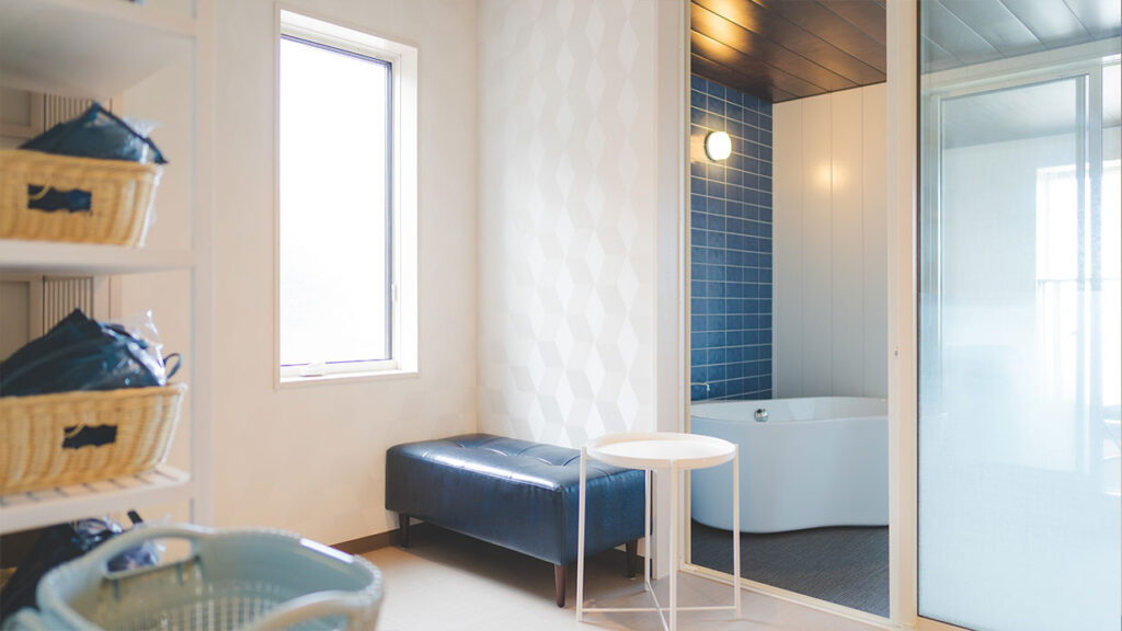 みかどサウナは水着着用が可能(※持参が必要です)で、着替えスペースや温水シャワーも完備。