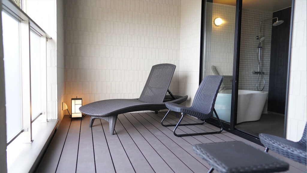 サウナと水風呂を楽しんだ後は、外に設けられた外気浴スペースへ。