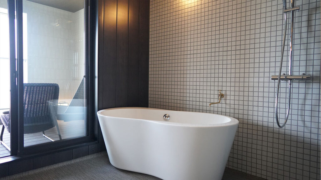 水平線と空が織りなす景色は、日常を忘れさせる爽快感たっぷり。外の風に包まれながら、じっくりとととのう時間をお楽しみください。