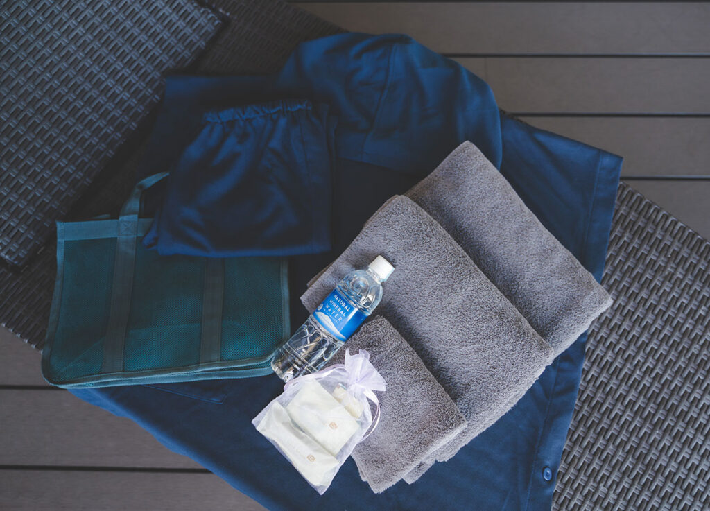 ミネラルウォーター、サウナポンチョ、バスタオル・フェイスタオル、POLA化粧品セットなど、必要なアイテムが揃っているので、手ぶらに近いスタイルで訪れることもできます。