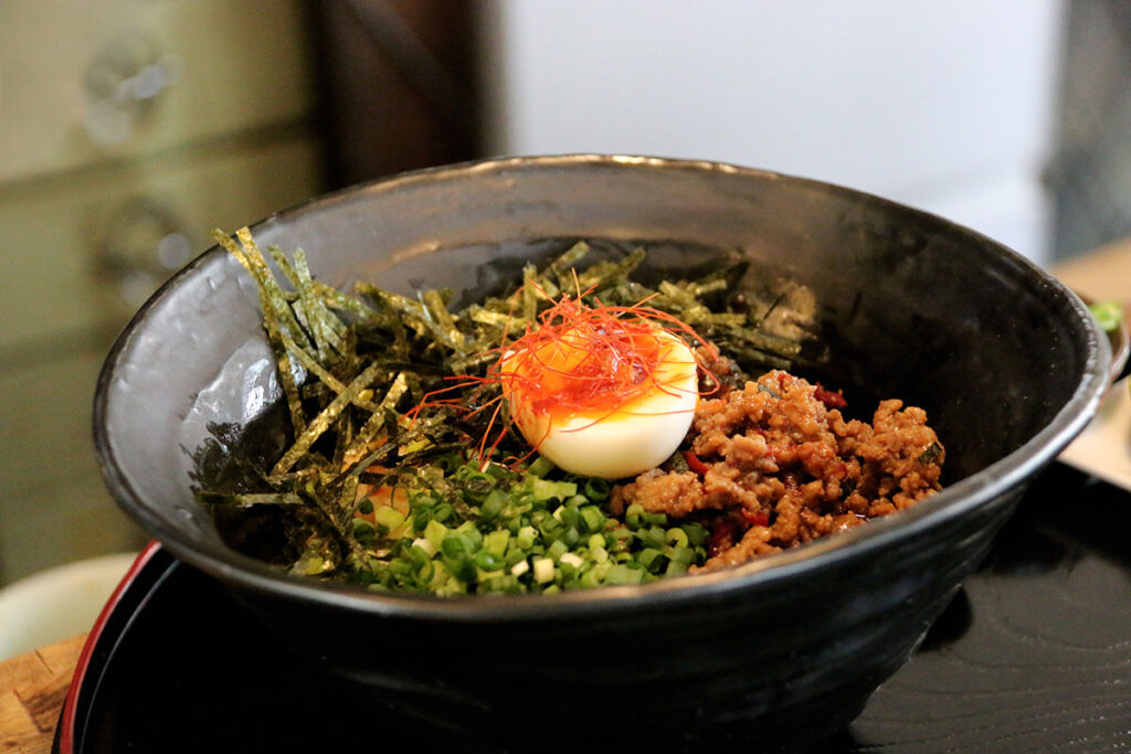 ピリッとした辛さがクセになる旨辛だれが絡む「旨辛まぜそうめん」。辛いものが好きな人にはもちろん、初めての人も楽しめるバランスの良い味わいが特徴です。
