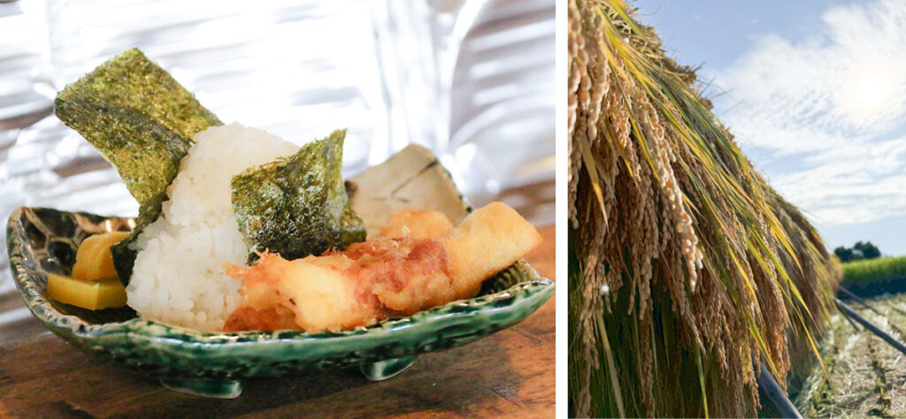 お店で使われるのは、苑田さんの家で作られたお米。収穫は家族総出で手伝い、機械乾燥ではなく「かけ干し」でじっくり水分を抜くことで、お米本来の旨味がぎゅっと凝縮。この手間ひまかけたお米を、素麺と一緒にしっかり味わえます。