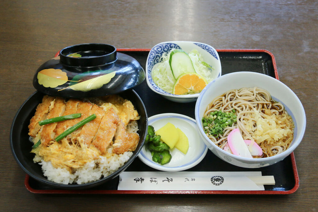 人気メニュー「カツ丼御膳」は、サクサクのカツにじゅわっと出汁が染み込み、そばやうどんとの相性も抜群。若者から家族まで楽しめるボリューム満点の一品。御膳には「まぐろ丼御膳」「天とじ丼御膳」「まぜまぜ丼」などがあり、好みに合わせて選べるお得なメニューです。