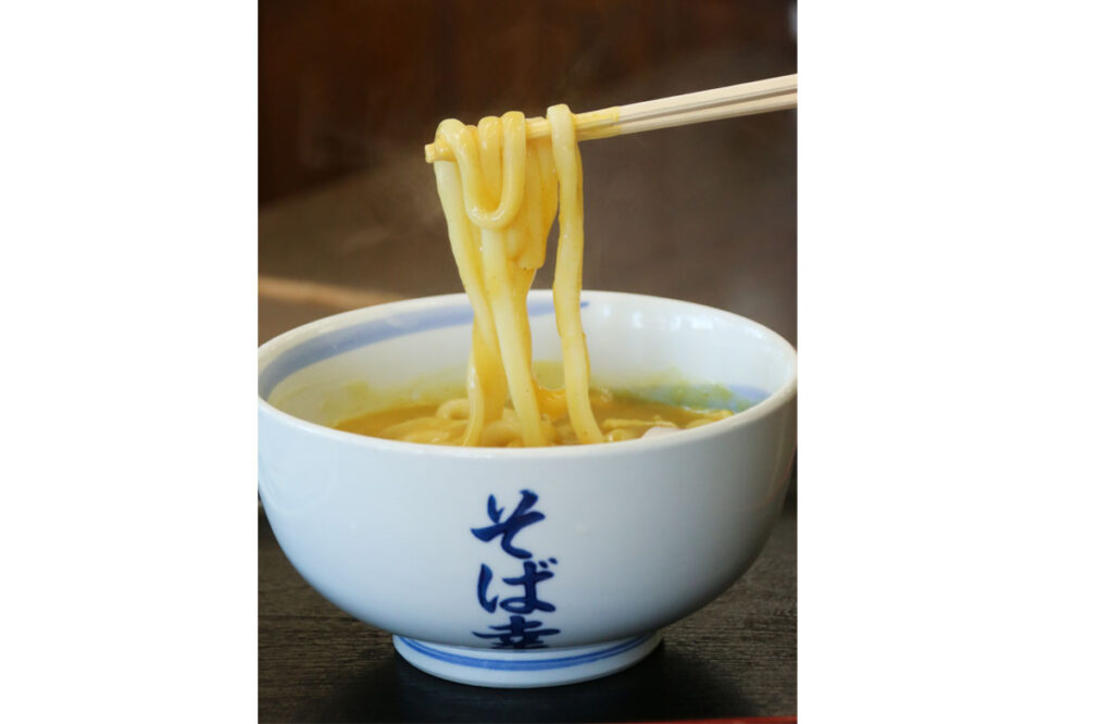 そばつゆの出汁とスパイスが効いた和風カレーうどん。リピーターも多いメニューです。