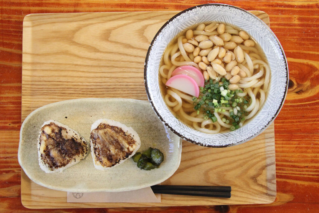 週替わりランチや特製ホットサンドも人気のカフェでは、地元の”ソウルフード”「ピーナツうどん」を食べられます。「ピーナツうどん」とは地元で古くから親しまれてきた味で、地域によって少しずつ作り方が異なります。ピーナッツの皮を丁寧に剥ぐ、皮を残して香ばしさを楽む、大豆のみを使用するなど、それぞれに受け継がれた味わいがあるそうです。