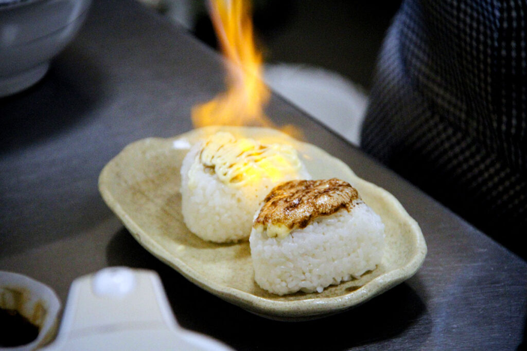 一緒に提供される、いりこベースのマヨネーズソースをのせてバーナーで炙った香ばしい「うまかおにぎり」も大好評。しっかり食べた後でも、「これは別腹」と思わず手が伸びてしまう一品です。