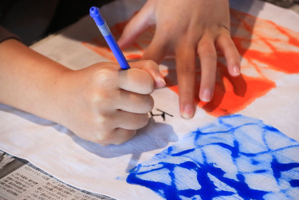 個性的なデザインができてくると、最後に名前や言葉をいれてオリジナル手ぬぐいのでき上がり♪