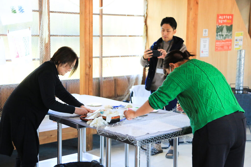 ワークショップの開始にあたり、代表の時合さんとアドバイザーの北田さんから「島原にも、自分の好きなことを仕事にしている人がいる、ということを知ってもらえたら嬉しいです」「今日はぜひ、楽しみながら体験して、この時間を一緒に過ごす中で、人と人とのつながりが少しずつ広がっていけばと思っています」と語りかけました。