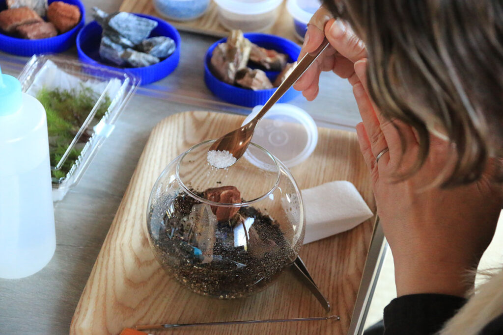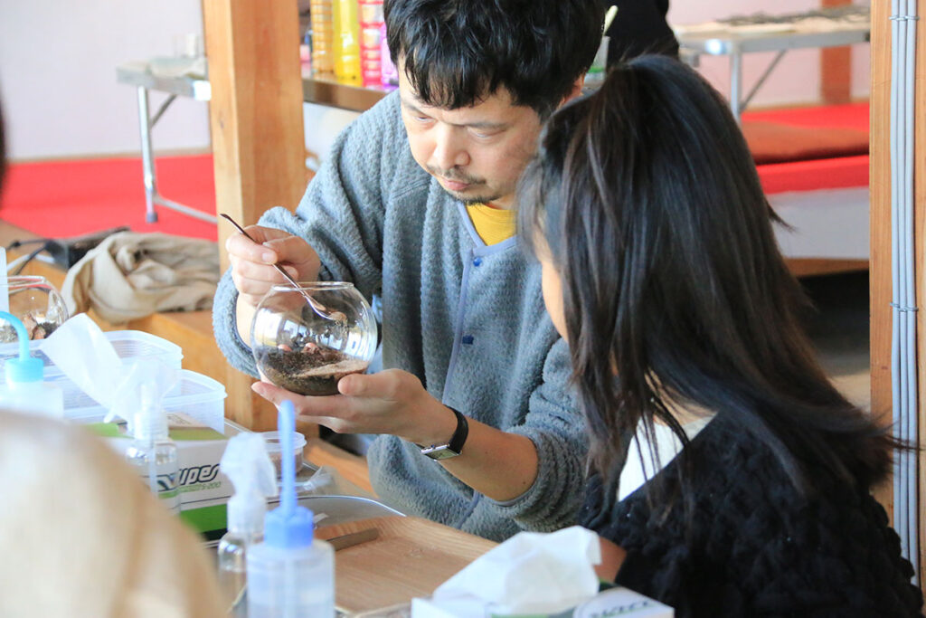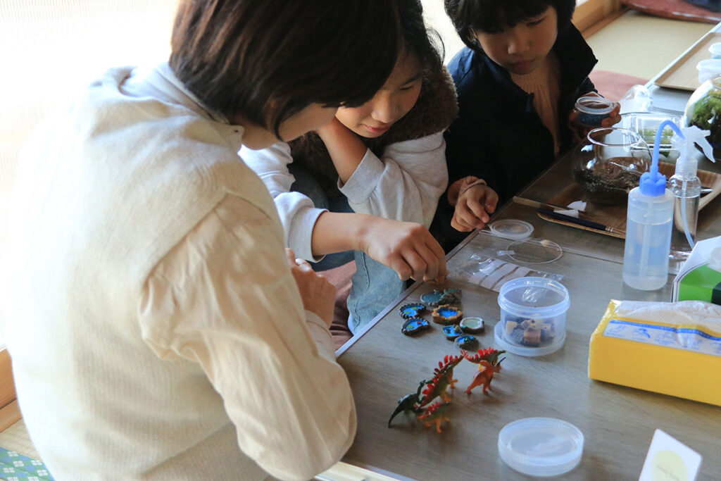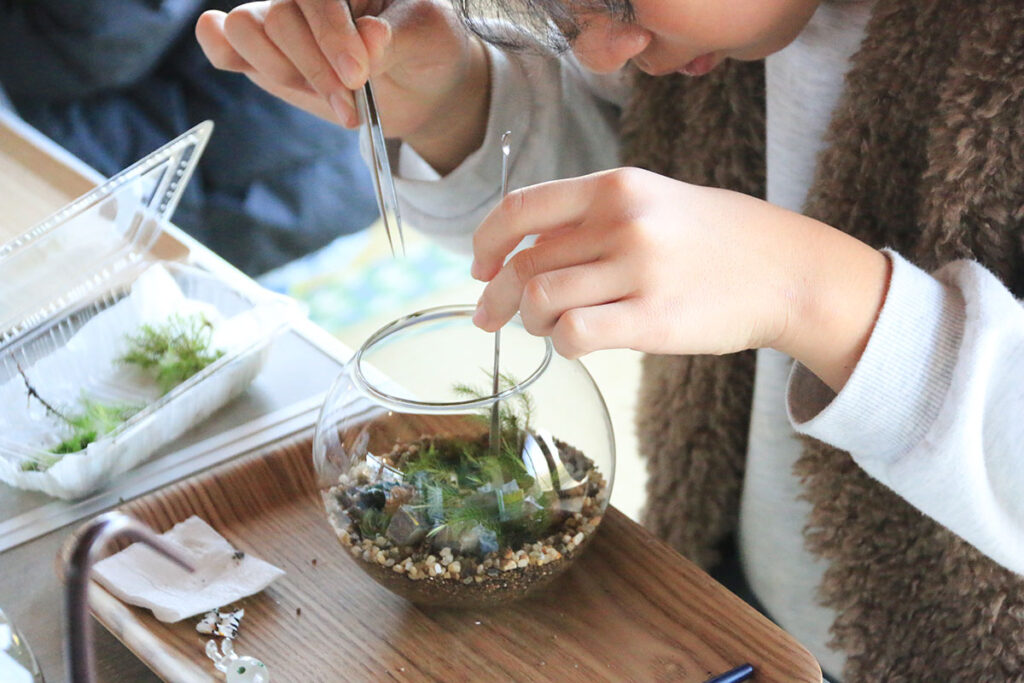 小学生の子どもたちでも、少しのサポートだけで自分で挑戦できるのが苔テラリウムのいいところ。