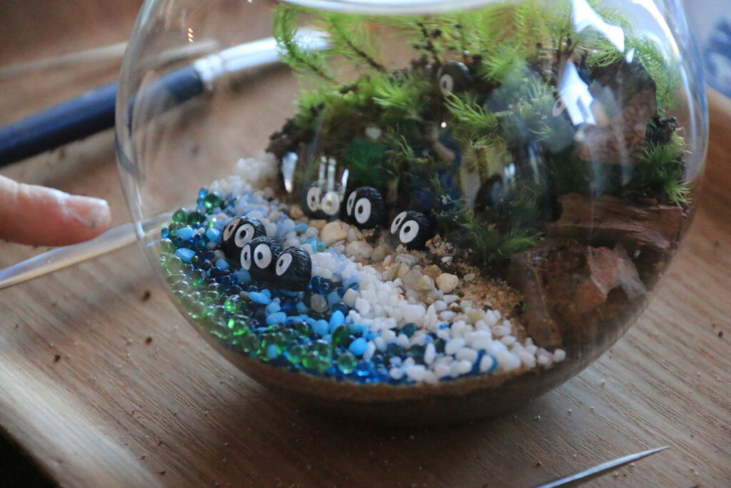 細かい作業に「あ〜っ!」となりながらも、土をならしたり苔を配置したり、根気強く庭を作る時間は不思議な達成感と癒しにあふれています。