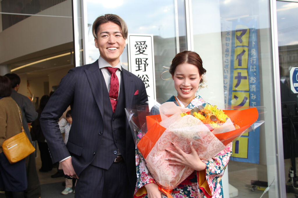 大切な人から花束を受け取る瞬間もあり、喜びと感謝の気持ちが自然に伝わる場面が印象的です。