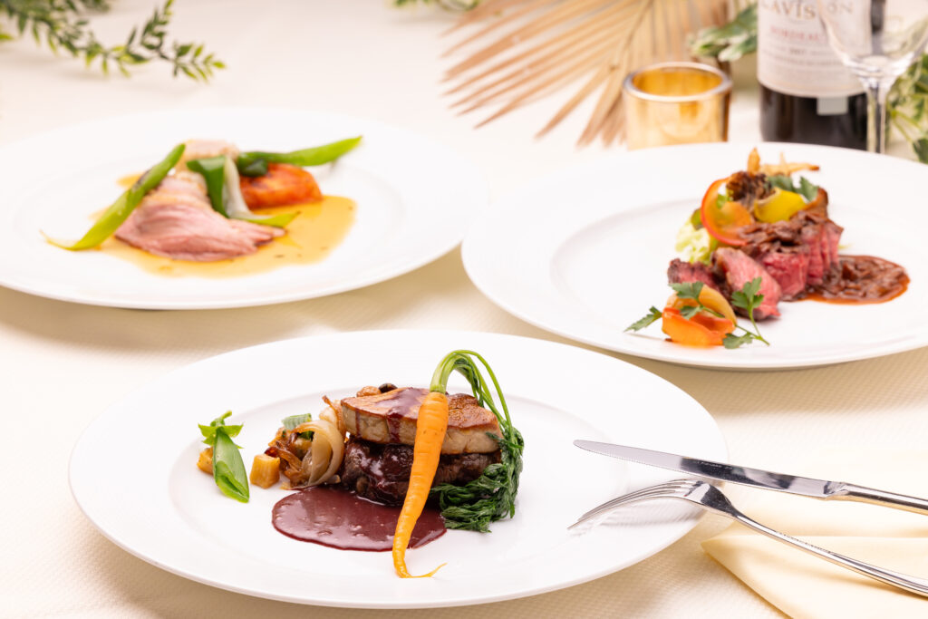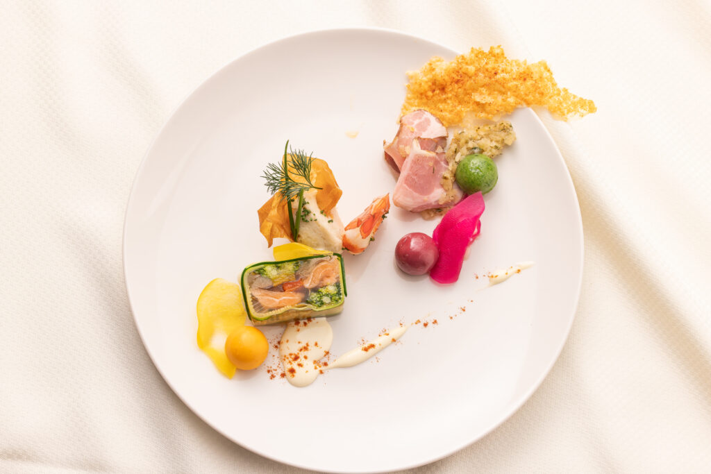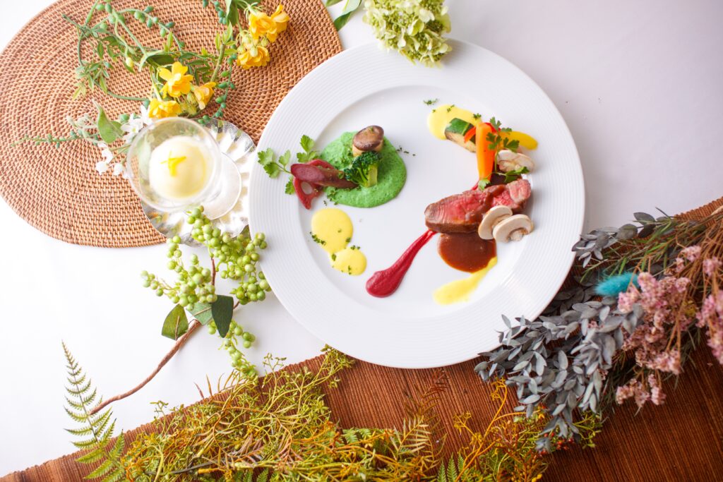 地産地消の旬をアートのように盛り付けた会席料理(8,000円~)は、まさに「門出」にふさわしい華やかさ。