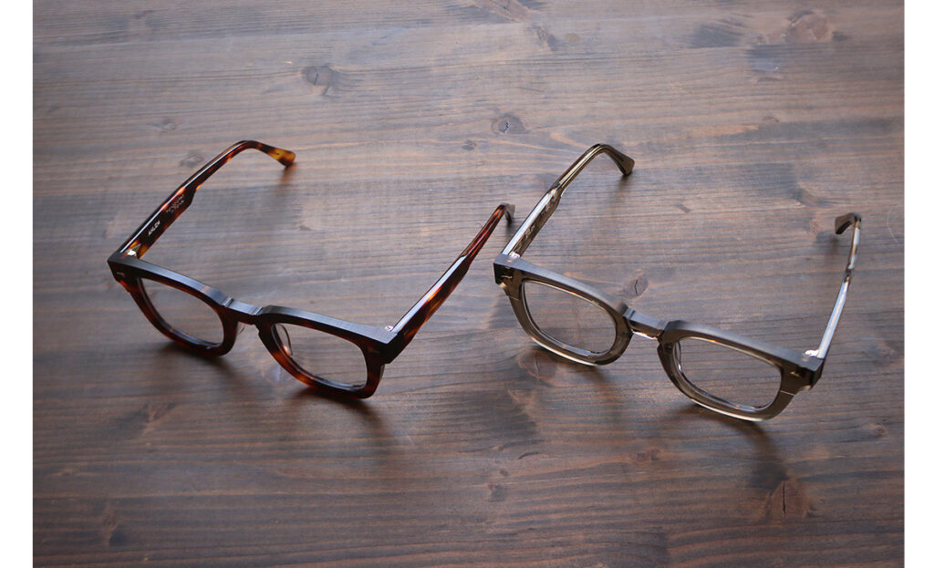 「Classic Turtle」は深みのあるべっ甲カラーで知的に、「Smokedlight」は透け感のある軽やかな印象に。選ぶ楽しさも広がります。立体的なカッティングが特徴の「Draggon」は、光沢とマットのコントラストでシンプルながら存在感のある仕上がり。